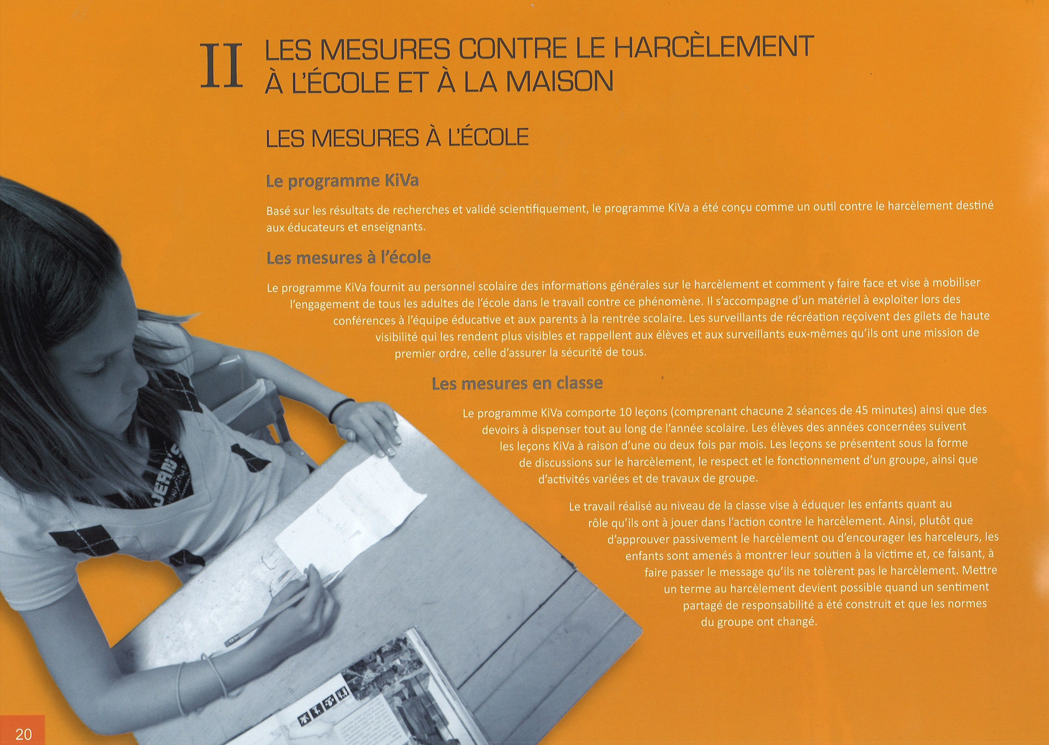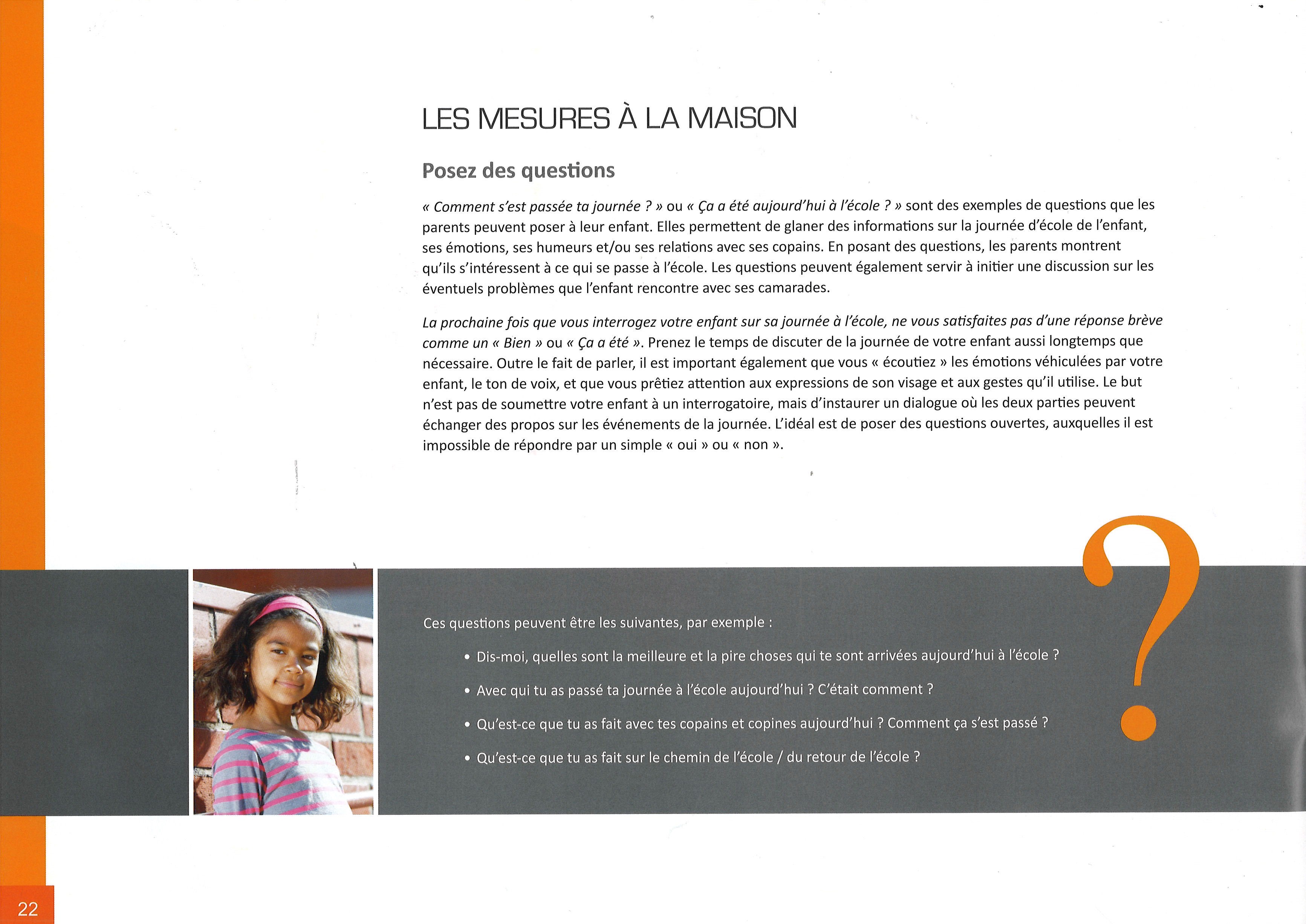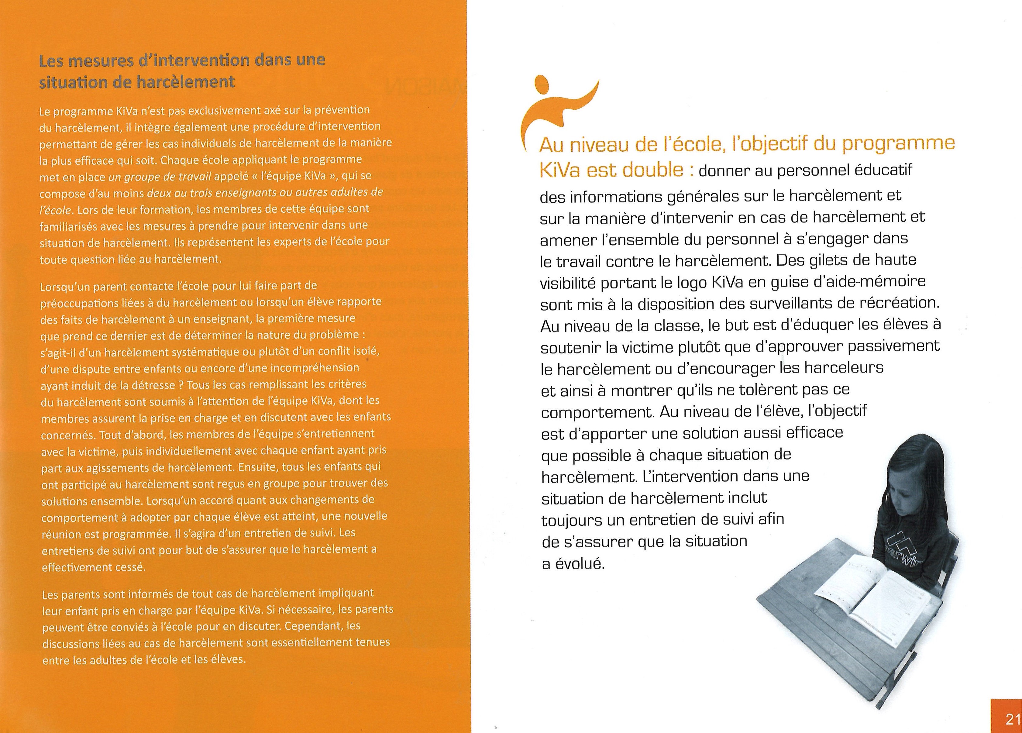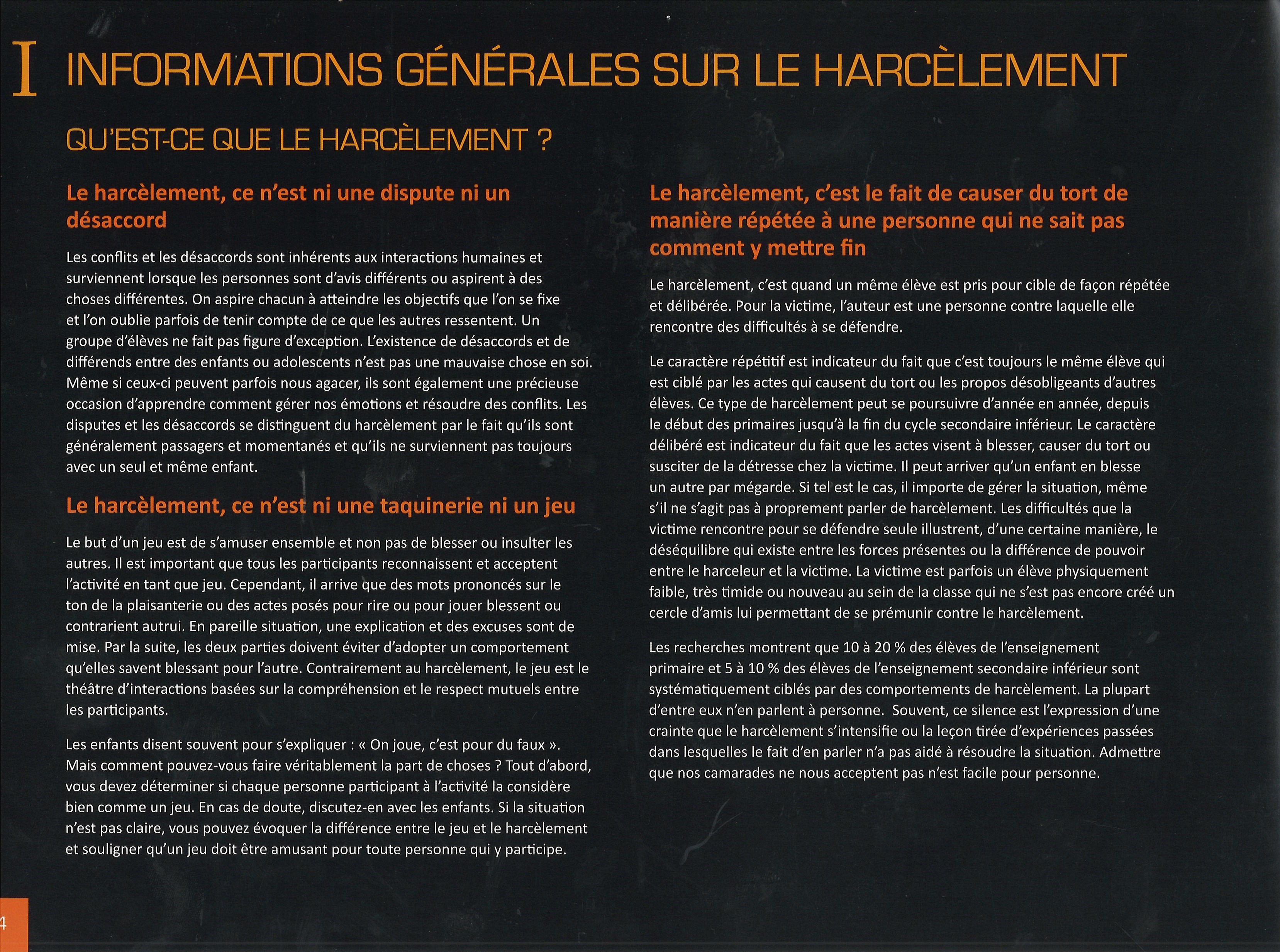 L’école est actuellement en cours de formation pour la prévention et la prise en charge du harcèlement. Toute l’équipe éducative est formée en prévention générale et spécifique. Une partie de l’équipe est formée en intervention dans des situations de harcèlement.